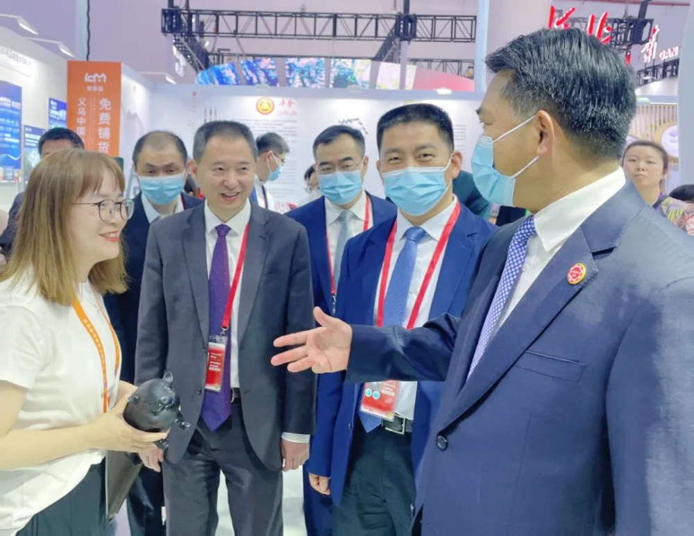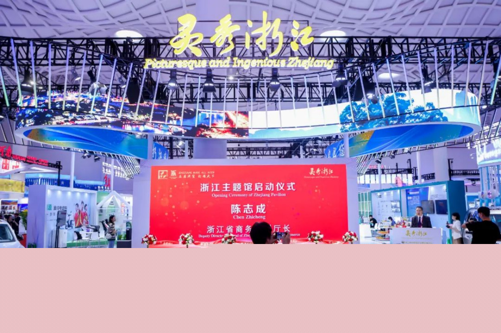 開幕式當天下午,商務(wù)部副部長盛秋平在浙江省商務(wù)廳副廳長陳志成等領(lǐng)導的陪同下,蒞臨浙江館參觀。