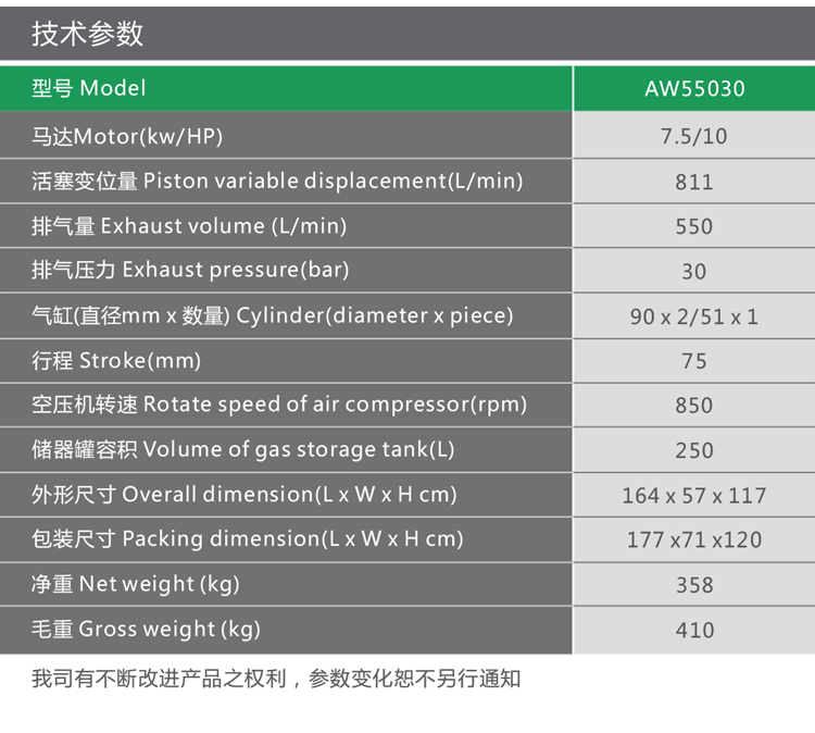 四、使用時間:活塞式空壓機(jī)連續(xù)工作時間過長,容易使壽命減短,要求中途停止供氣時關(guān)閉空壓機(jī)電源。