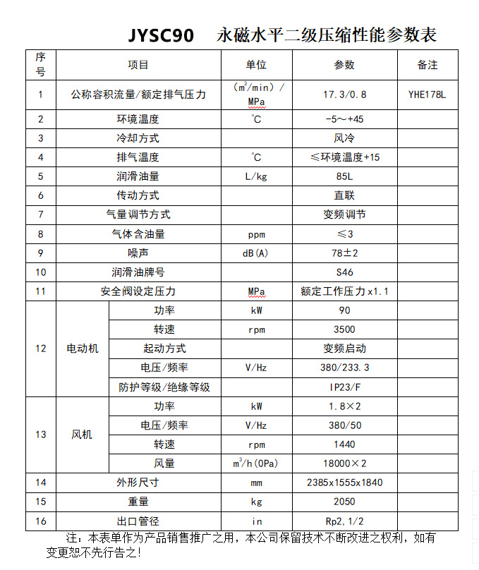 產(chǎn)品名稱:90kW 水平雙級直連永磁變頻空壓機 JYSC90