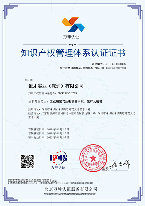 聚才實業(yè)(深圳)有限公司自創(chuàng)辦起,一直致力于為客戶提供整套氣體節(jié)能解決方案?,F(xiàn)公司擁有五十余項專利,為了更好的保護科研產(chǎn)品,現(xiàn)發(fā)展階段需要一套完整的知識產(chǎn)權(quán)管理體系來為技術(shù)創(chuàng)新保駕護航。在為期兩天嚴格的外審過程中,我司知識產(chǎn)權(quán)管理的相關(guān)工作得到了審核員的認可,通過了GB/T29490-2013企業(yè)知識產(chǎn)權(quán)管理規(guī)范的相關(guān)要求。